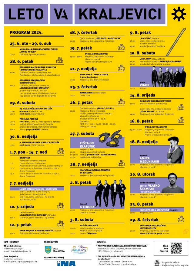 Drage sugrađanke i sugrađani, dragi gosti i posjetitelji, u nastavku vam predstavljamo ovogodišnji program „Leta va Kraljevici“.