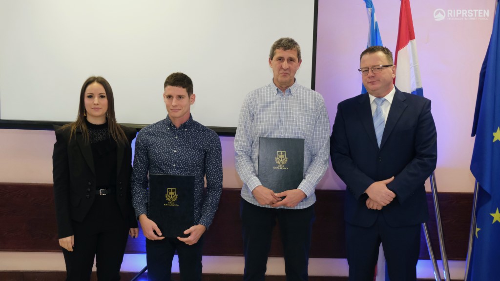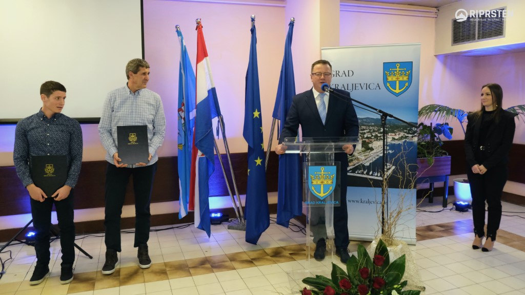 U najsvečanijem trenutku večeri dodijeljene su nagrade Grada Kraljevice. Za postignute vrhunske sportske rezultate u 2021. godini i osvojeno peto mjesto u triatlonu na Paraolimpijskim igrama u Tokiju godišnju nagradu dobio je Antonio Franko. A za 50 godina neprekidnog djelovanja, doprinosa u sportu i odgoju mladih nagrada Grada uručena je Košarkaškom klubu Kraljevica.